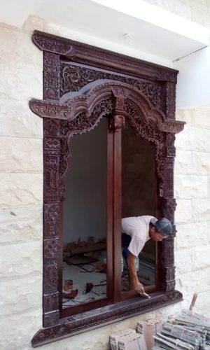 Jendela gebyok ini finising menggunakan mowilek,supaya warna tidak mudah pudar dan awet.sebab jendela gebyok ini di pasang di bagian luar.