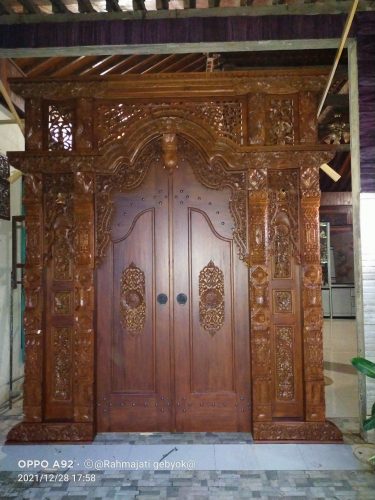 Pintu gebyok di rumah ibu lisa pati ukuran bukan standar gebyok lebar 250 masing ukuran berbeda yaitu yang gebyok standarbya pintu lebar 100 cm namun yang ini pintu lebar 120 cm,