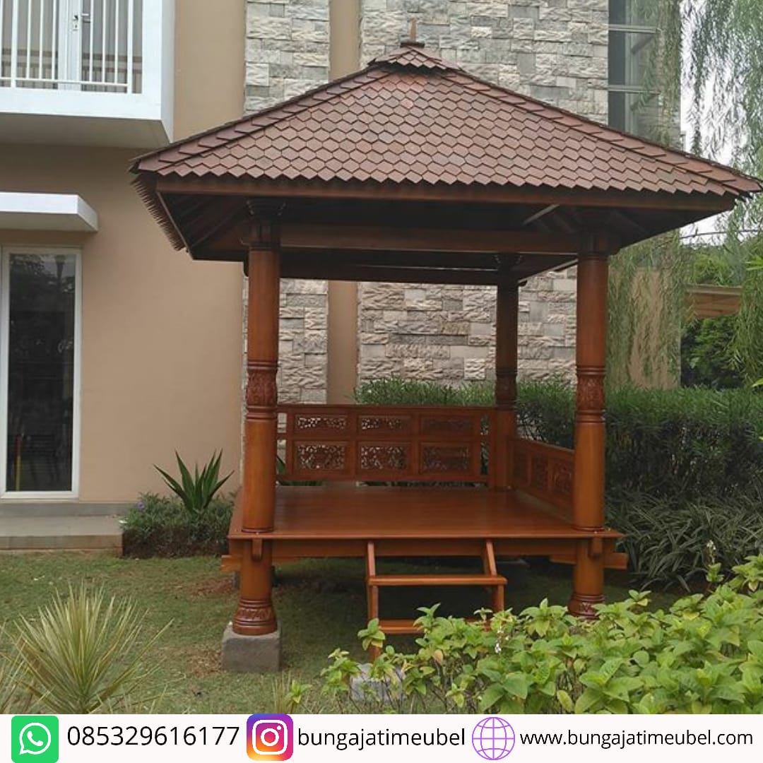 Gazebo jati 2×2 m bagus untuk taman kecil